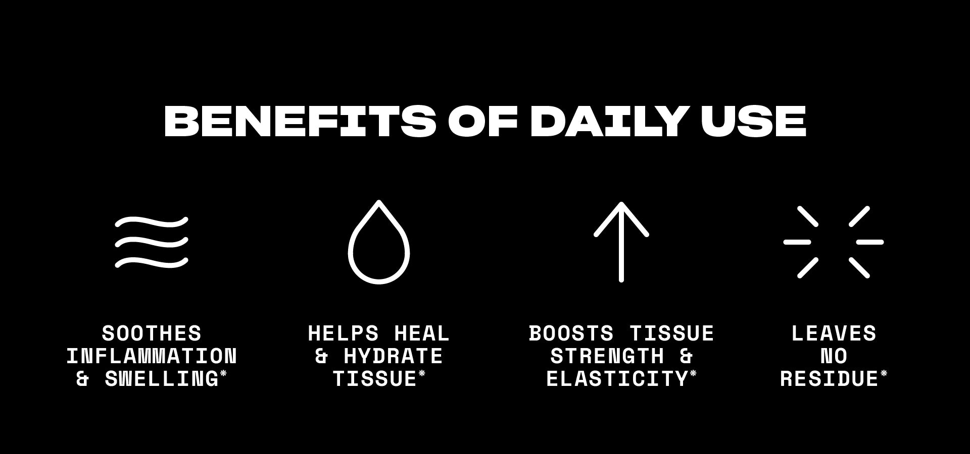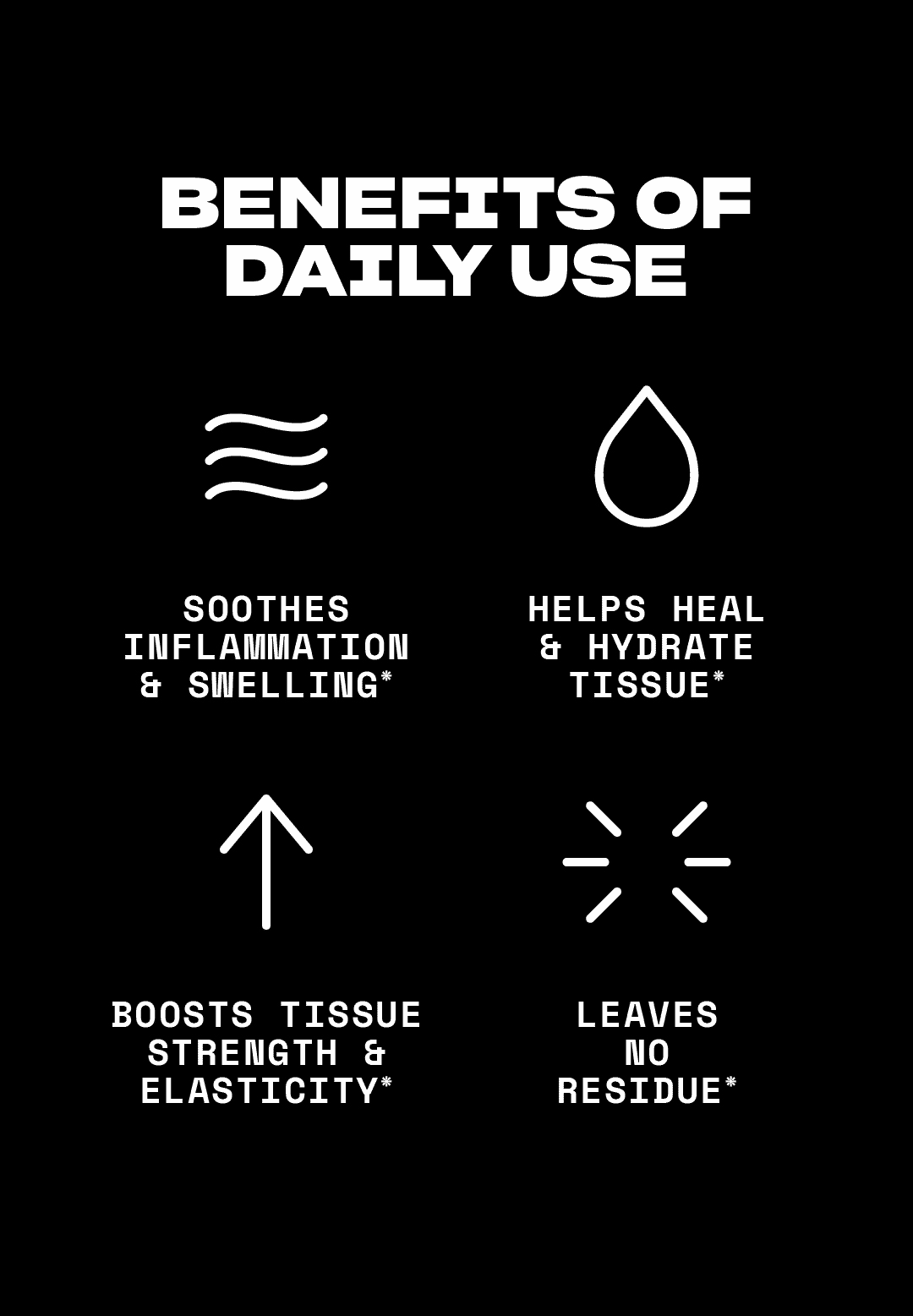 A potent blend of 8 healing plant extracts, 5 multi-layer hydrators, 4 skin essential minerals, 3 powerful peptides, and absolutly no perfumes, dyes, or B.S.