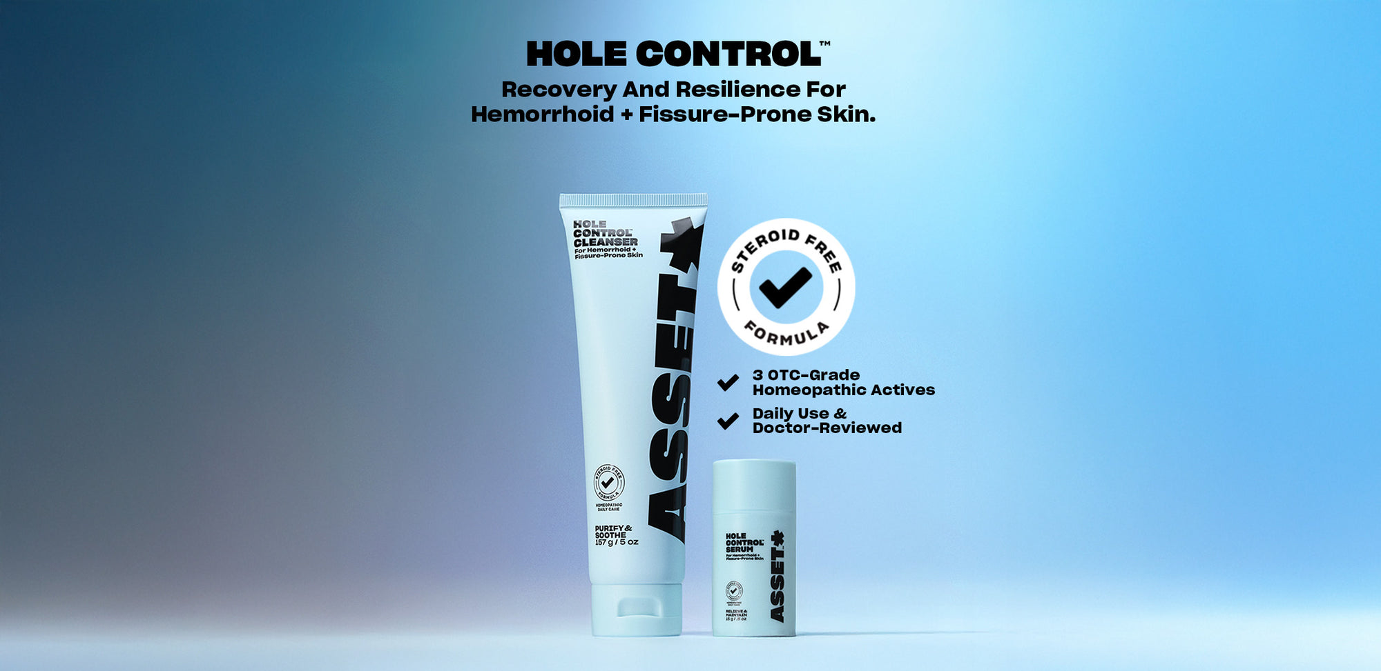 Hole Control™ is targeted daily care for hemorrhoid- and fissure-prone skin—formulated with OTC-grade homeopathic actives and barrier-supportive ingredients, extracted in-house in small batches, to soothe, protect, and help maintain compromised skin.